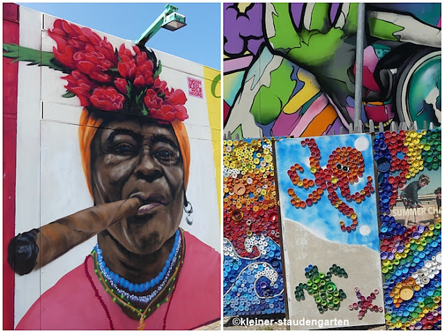Ist der Bauwagen nicht zauberhaft hergerichtet...da schmeckt der Kaffee bei einem Gartenplausch doch besonders gut und dabei wurde nicht nur über Pflanzen, Farben und Texturen gefachsimpelt ...auch manch Privates oder einfach nur gemeinsam die schöne Atmosphäre genossen, schließlich hatte man nicht oft die Gelegenheit so außergewöhnlich zur Kaffeestunde zu sitzen.